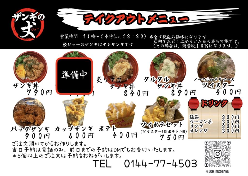 昼の11時〜14時まで「ザンギの丈」としてテイクアウト&イートイン有りで営業を始めました